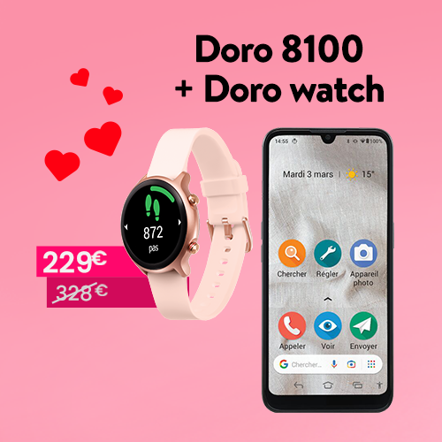 Ces deux appareils permettent à votre maman de rester en contact avec ses proches, où qu'elle se trouve. La montre connectée est dotée d'un bouton d'assistance d'urgence qui permet à votre maman d'appeler à l'aide en cas de besoin. De plus, le suivi de l'activité physique et le moniteur de fréquence cardiaque permettent à votre maman de rester en forme et de surveiller sa santé. Couplées au smartphone Doro qui est facile à utiliser et dispose de nombreuses fonctionnalités pratiques, ce pack facilitera la de votre maman.